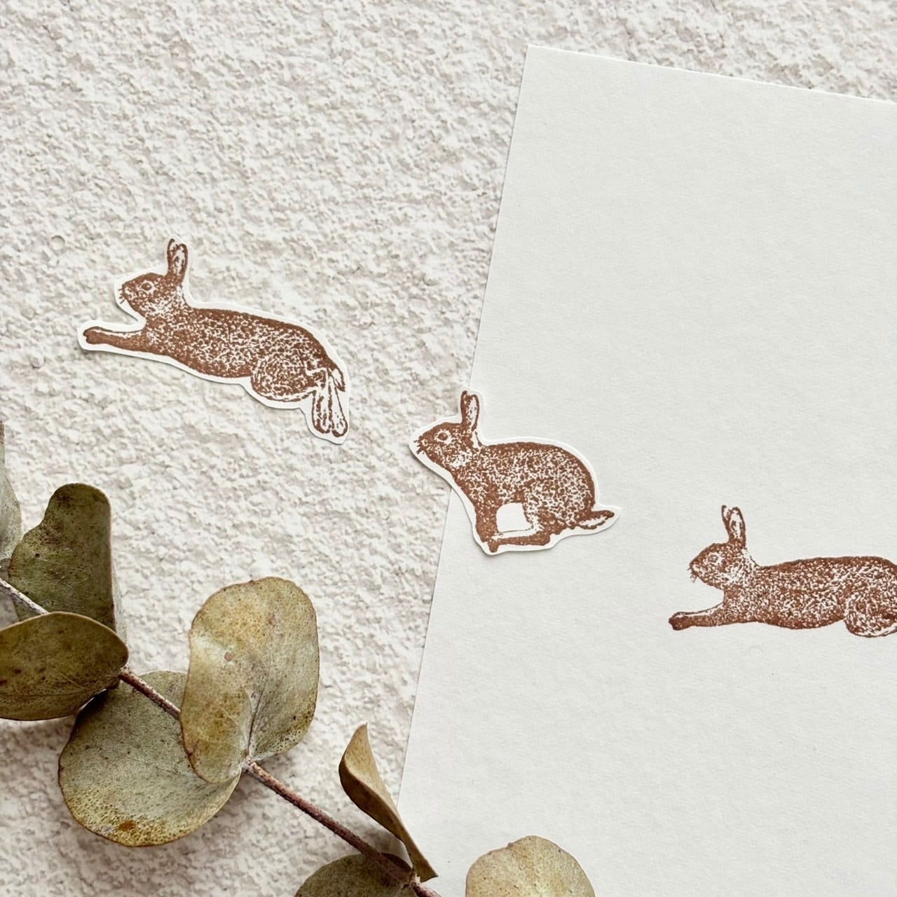 走っている2匹の野うさぎは、繋げて捺すと動きが表現できるのもまた楽しい使い方です。