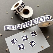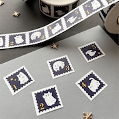 ネイビーとイエローの2色刷り、切手風のデザインで可愛く仕上がりました