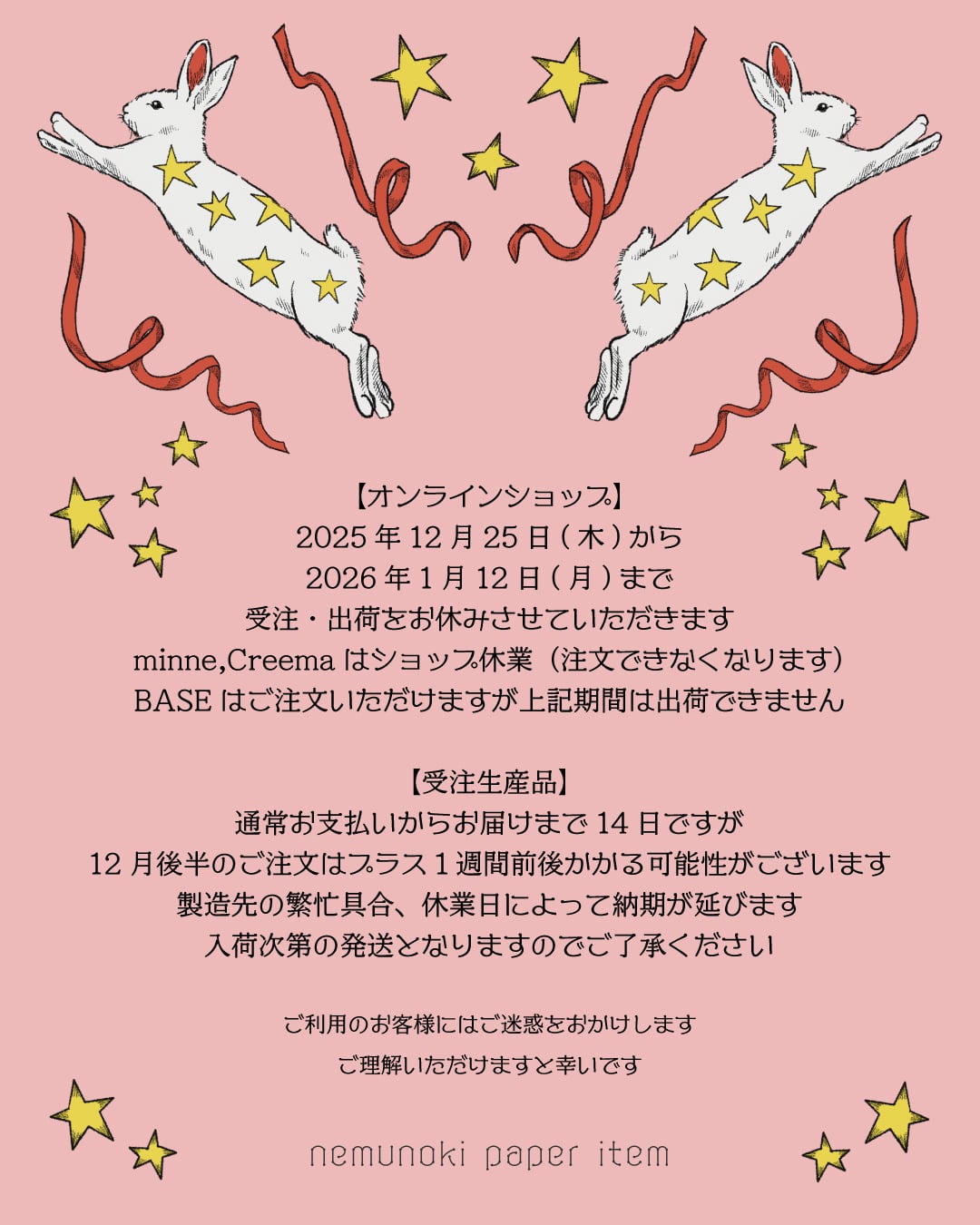 12月後半のご注文はプラス1週間前後かかる可能性がございます