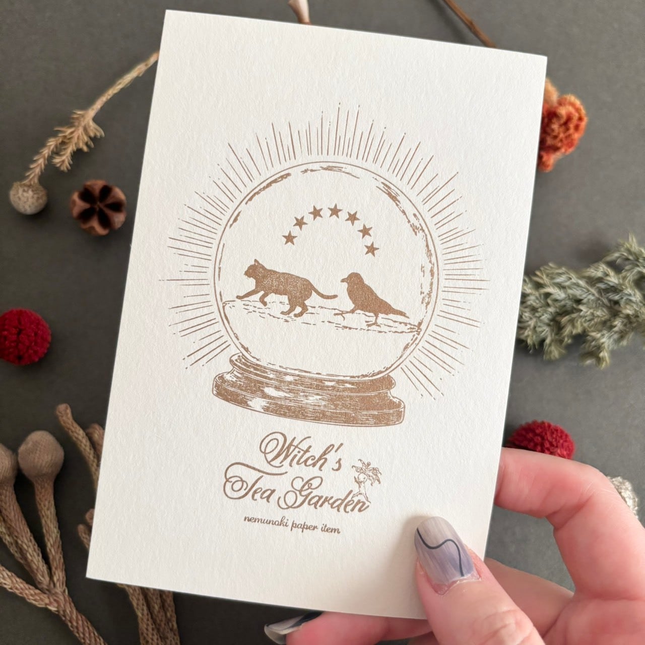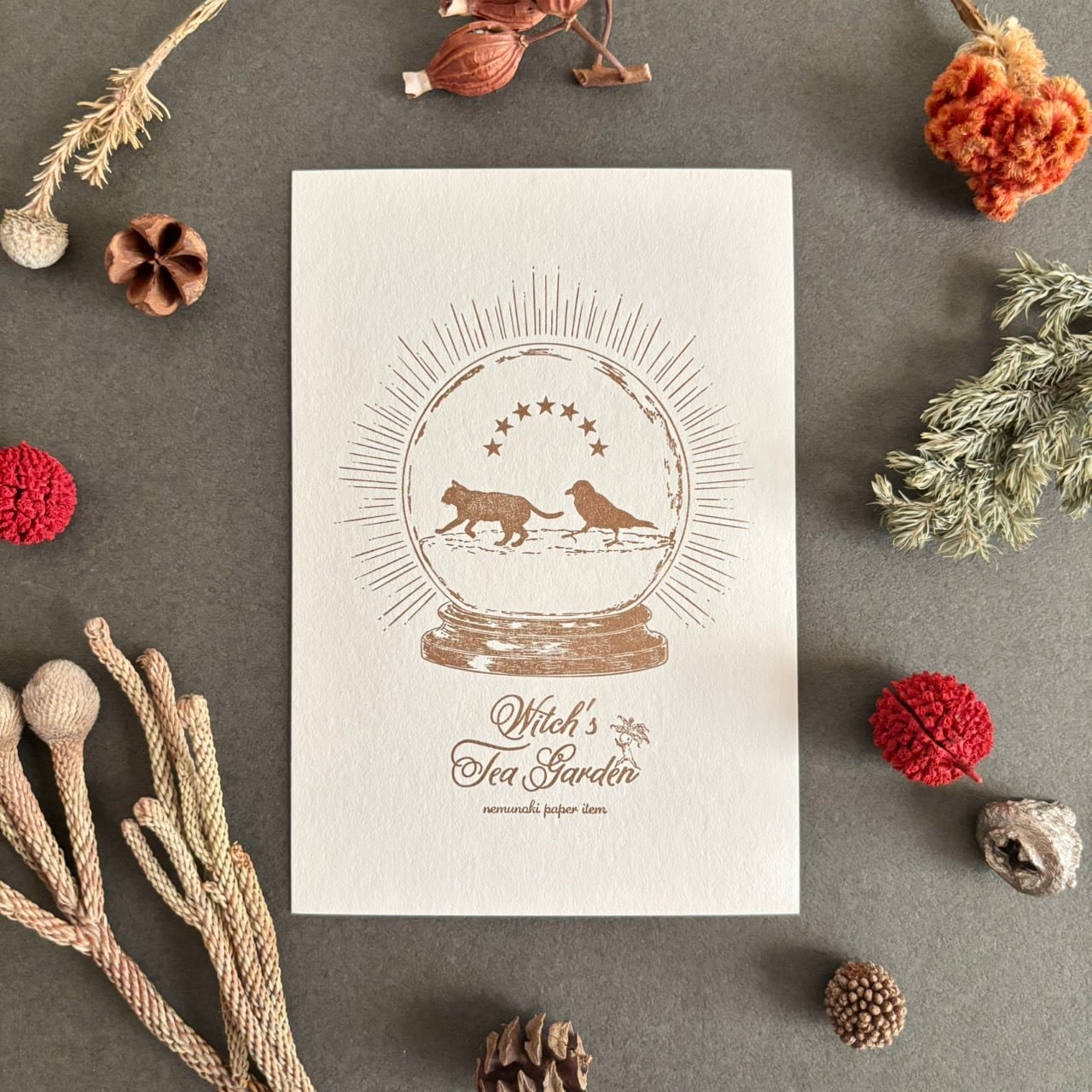 魔女の庭 スノードーム活版印刷カード(白×金)
