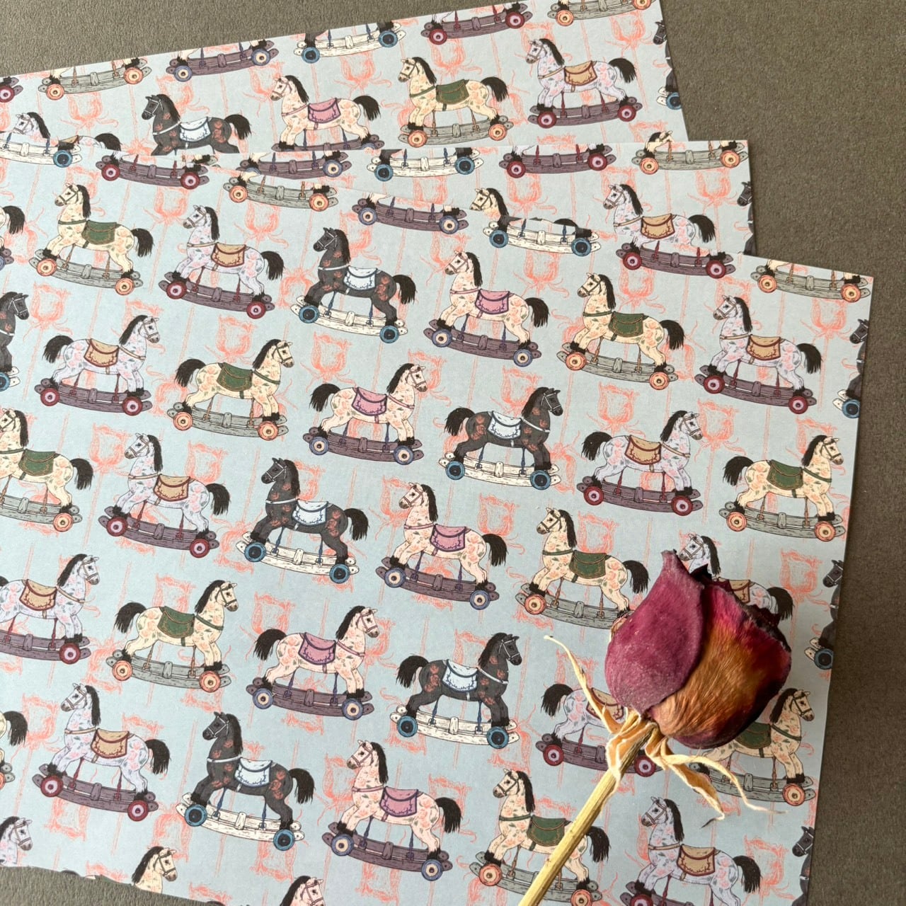 木馬にも優しい薔薇の装飾を施し、古いながらもエレガントな雰囲気に仕上げました