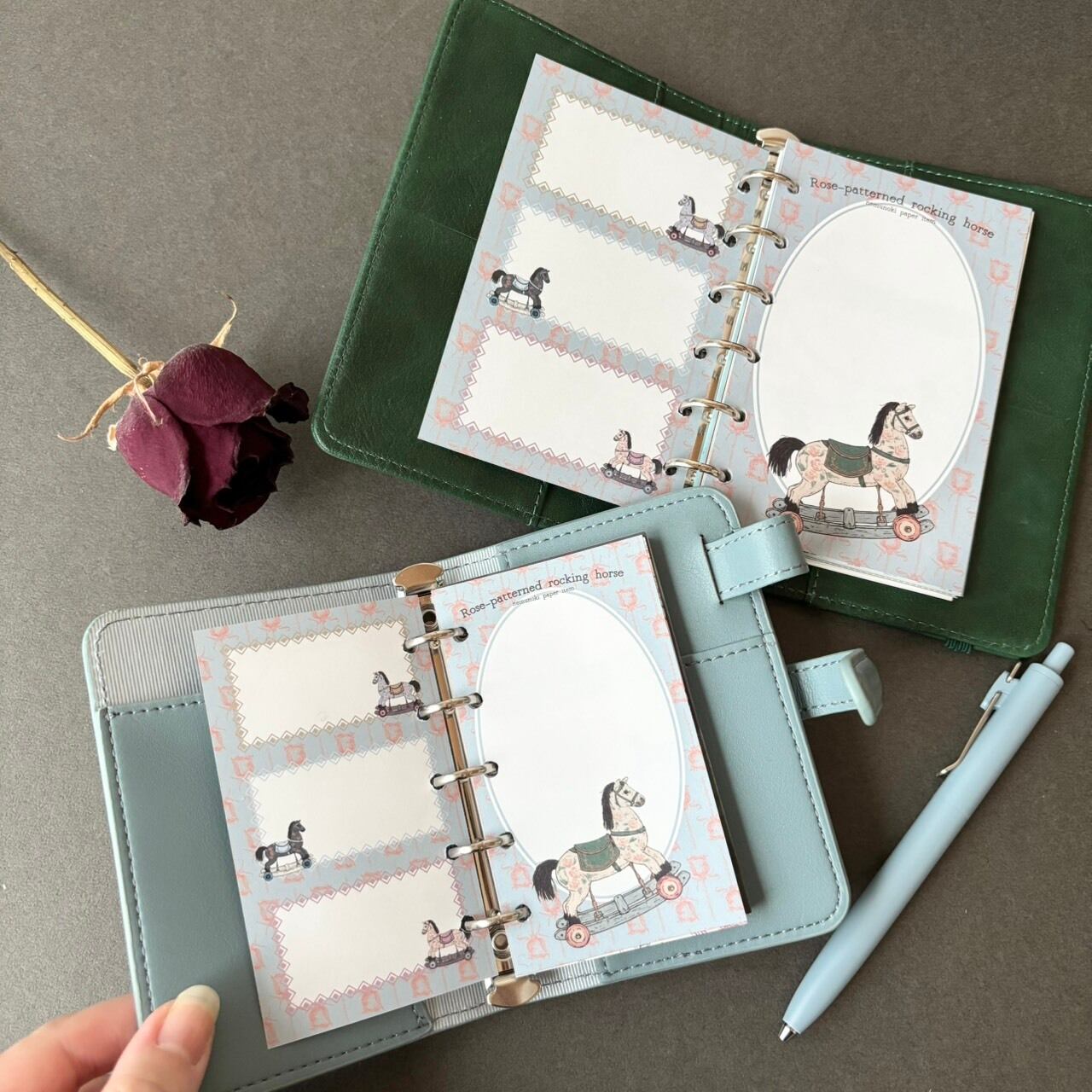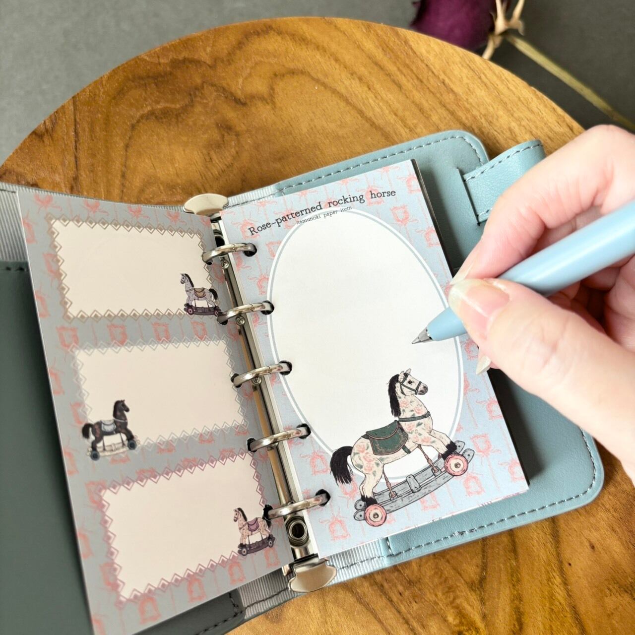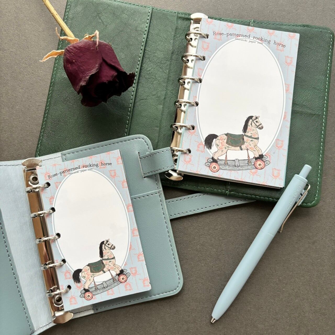 薔薇柄の古木馬 手帳リフィルサイズメモ(M6/M5)