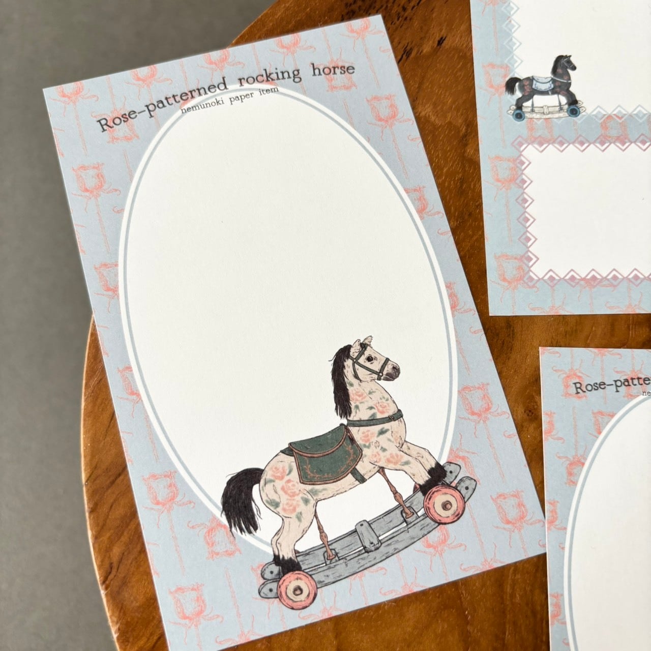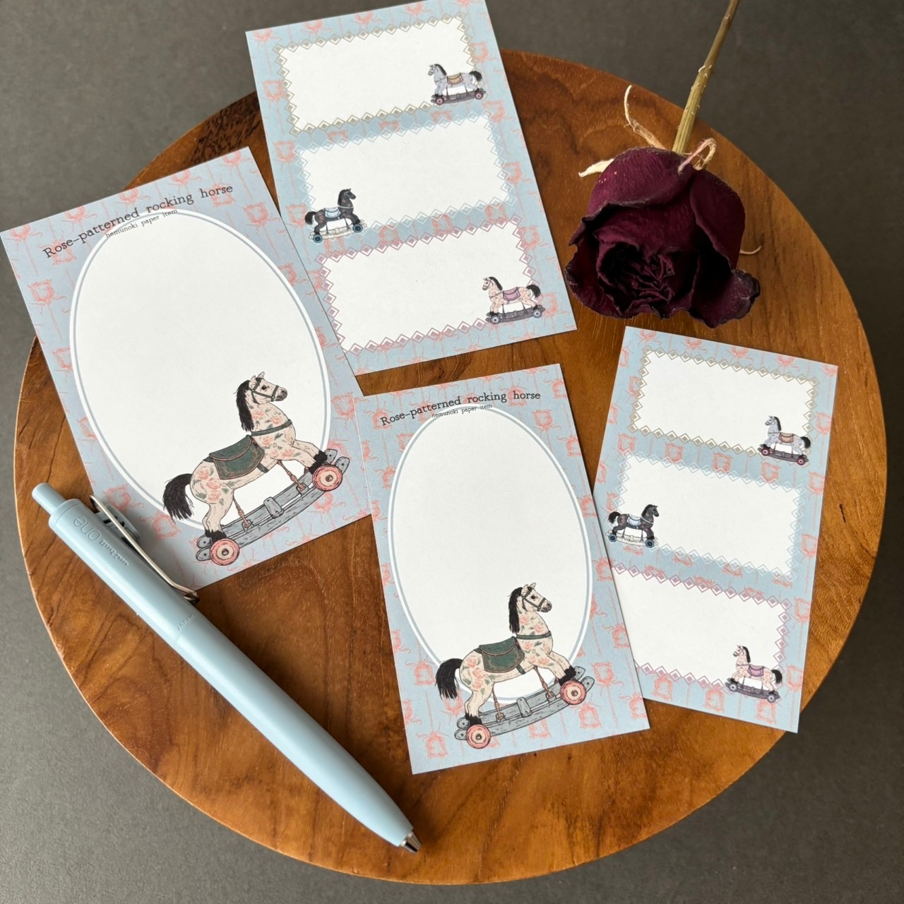 木馬にも優しい薔薇の装飾を施し、古いながらもエレガントな雰囲気に仕上げました