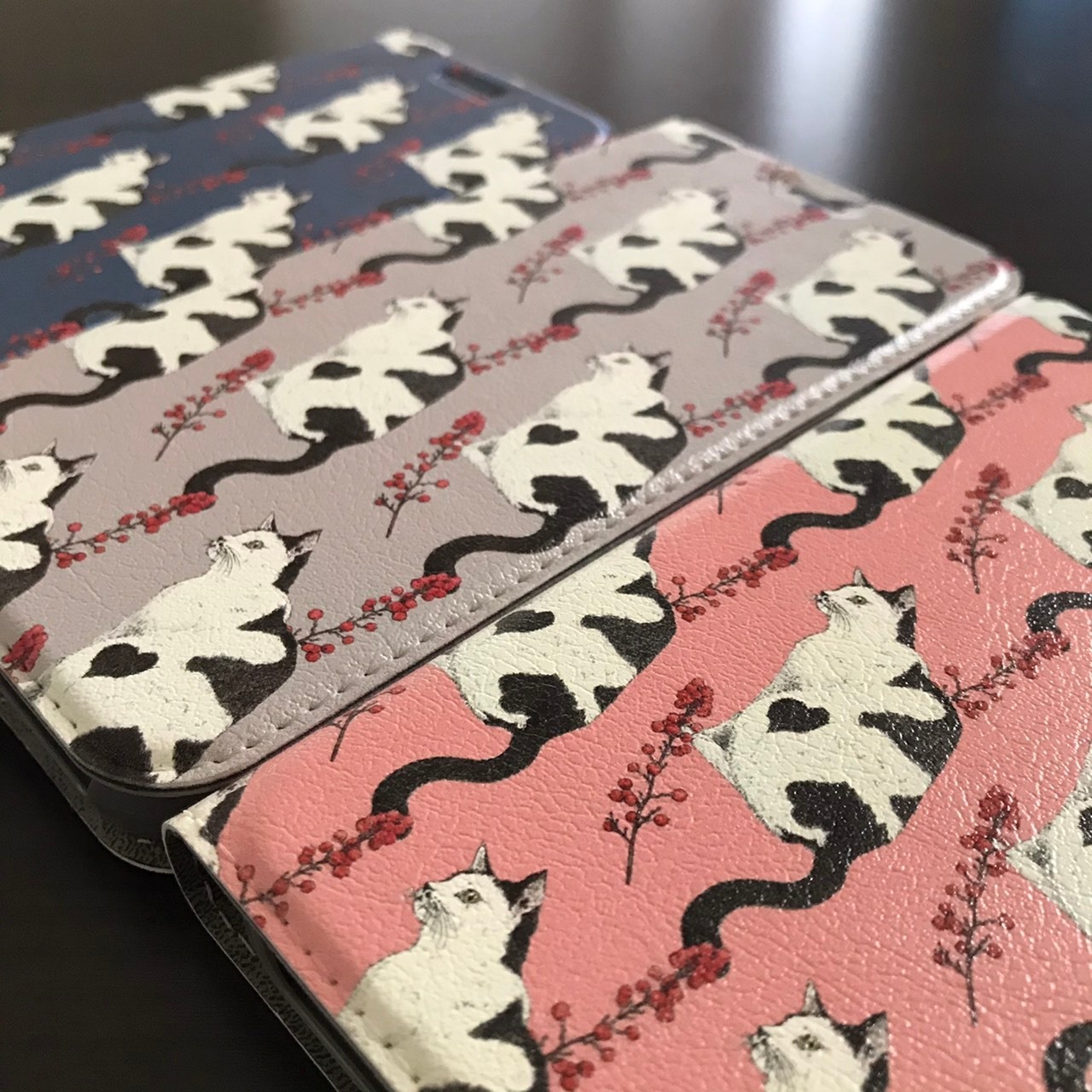【受注生産】猫と南天 帯なし手帳型スマホケース