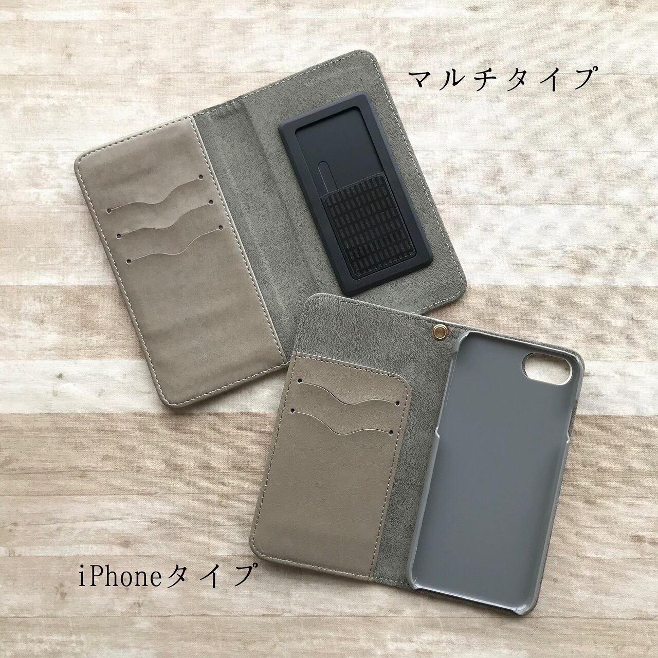 ベルトや留め具のないシンプルな手帳型スマホカバーにイラストをプリントしています。