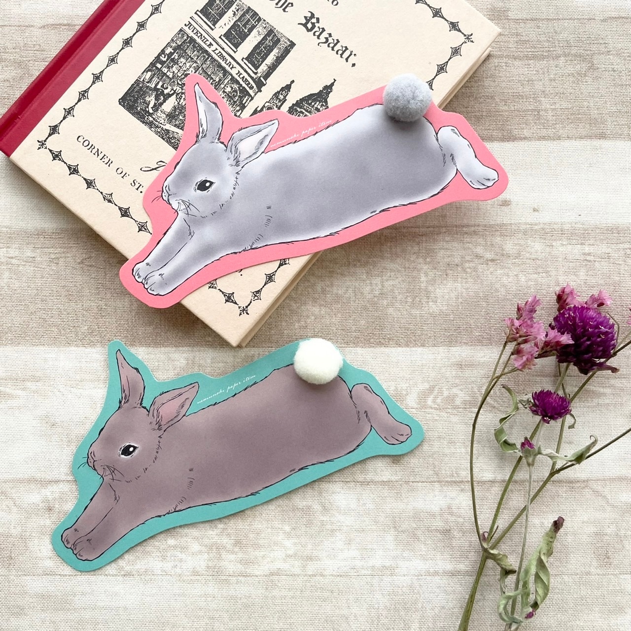 本に挟むと後ろ足としっぽがぴょこっと出るデザイン。