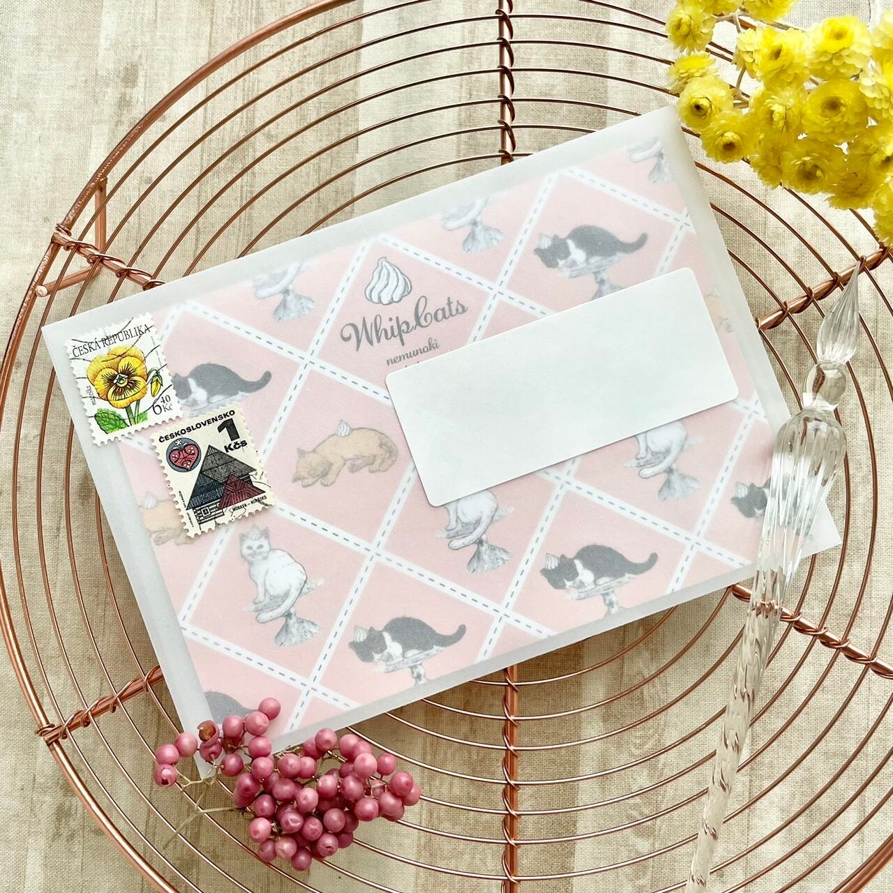 淡いピンク色でまとめた便箋は、トレーシング封筒から透ける様子も楽しんで下さいね。