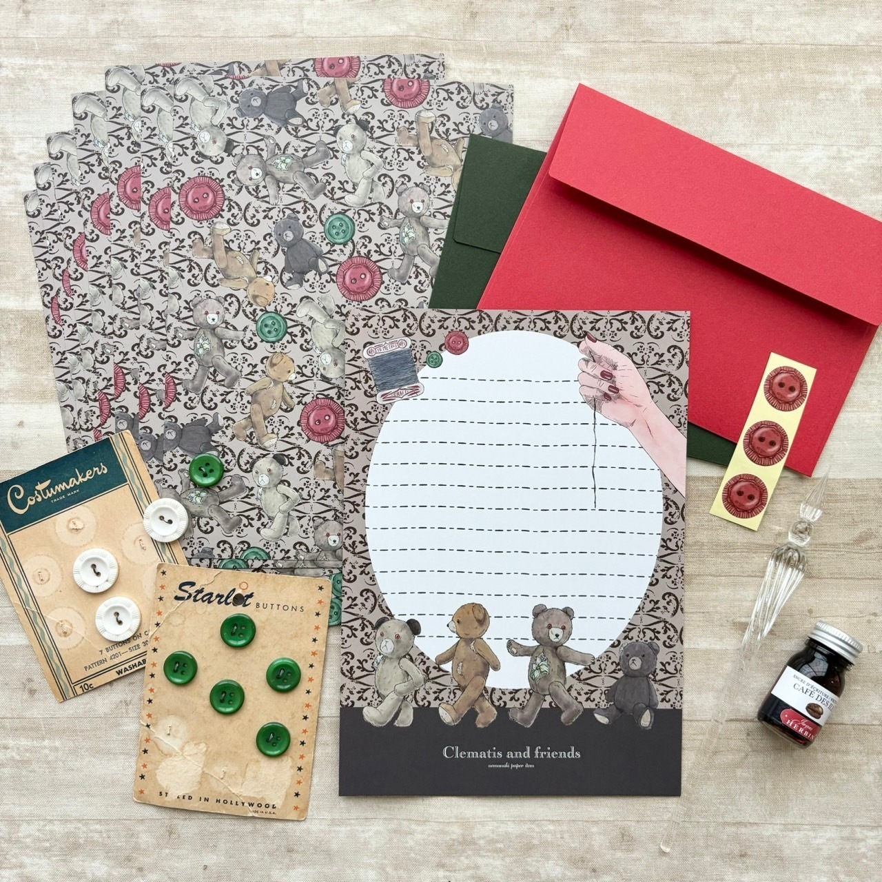 素材:便箋 上質紙90Kg、封筒 コットン(レッド&グリーン)