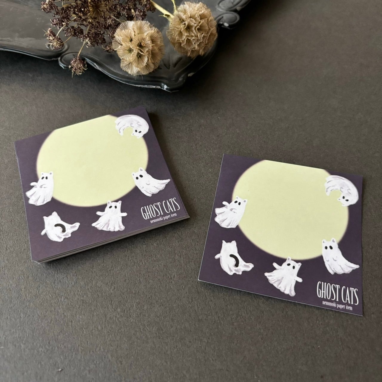人気アイテムのスクエアミニメモ、おばけねこちゃん柄でも作ってみました。